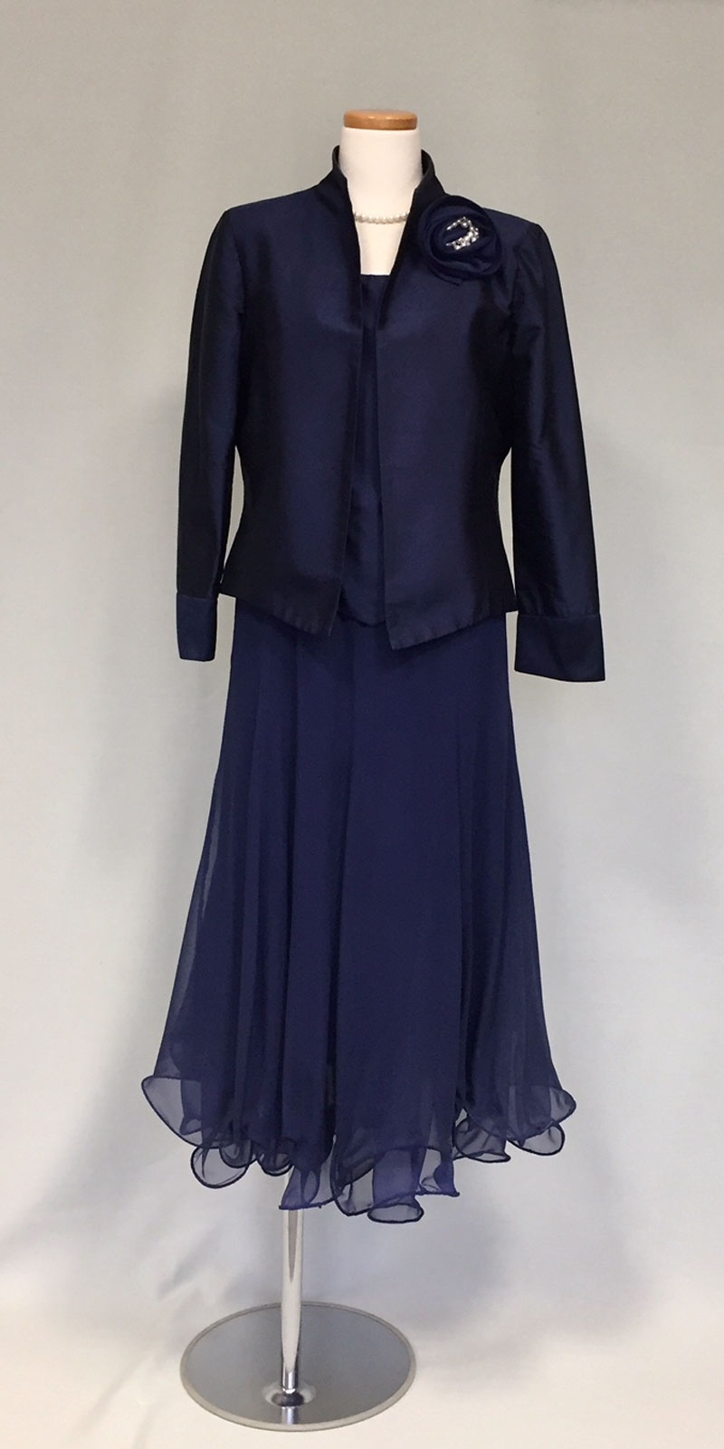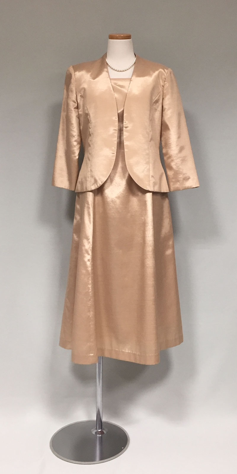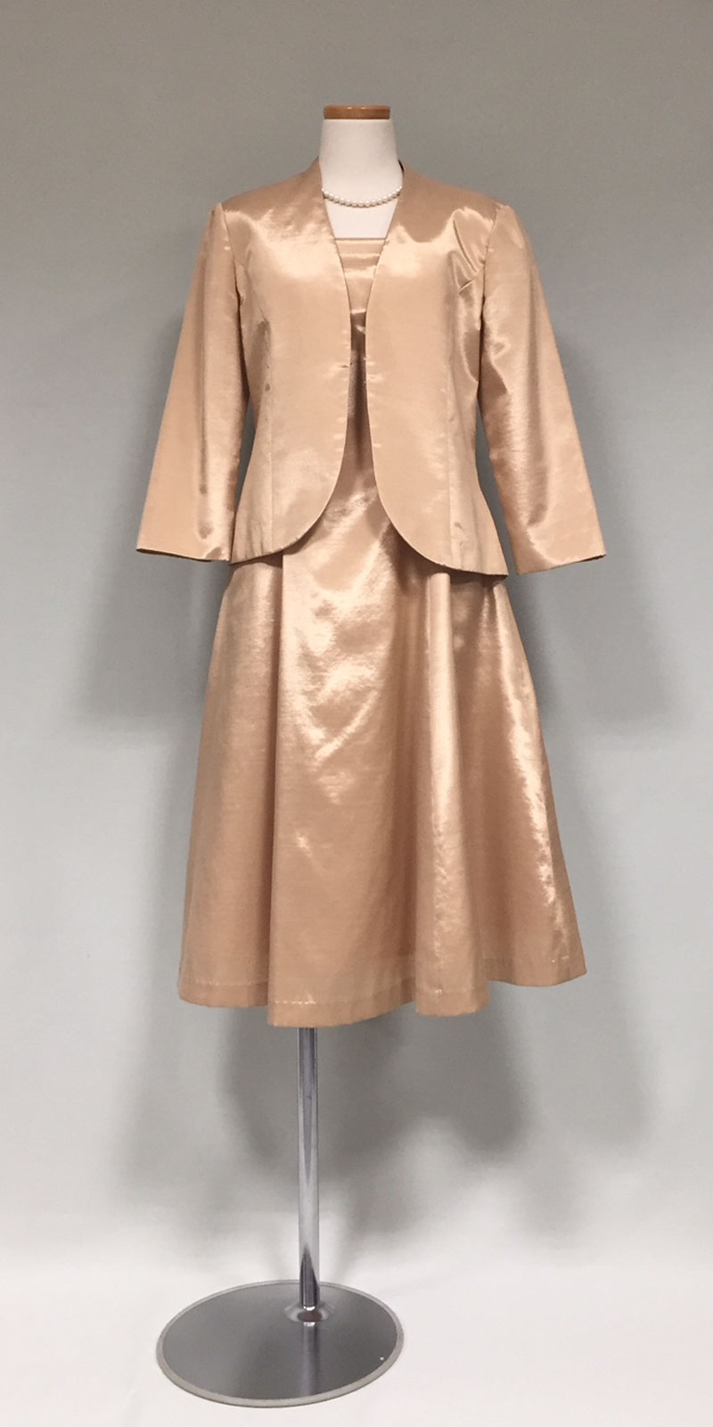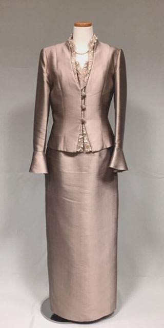 ◆膝下丈のアフタヌーンドレスまたはデイドレス。「ロングドレス」と指定のない時は、膝下丈も正式な昼の正礼装です。園遊会にもお薦めの格調高い装いです。◆