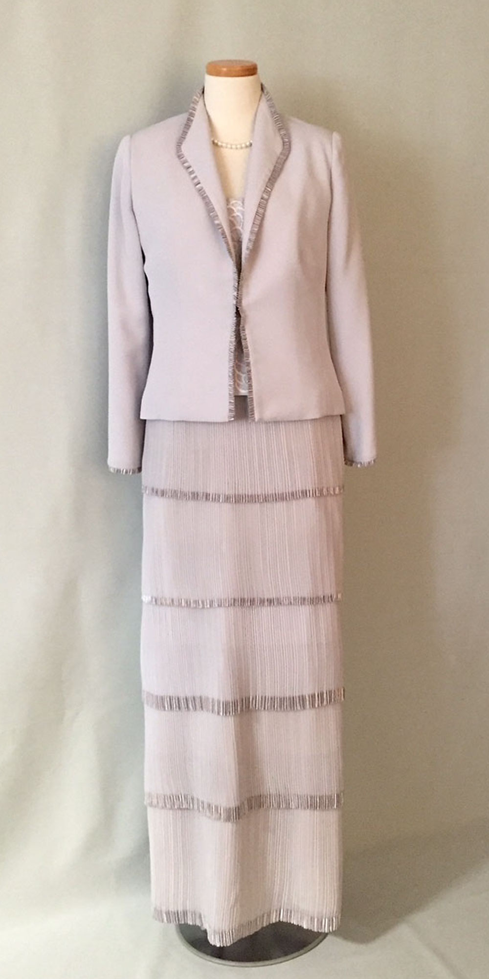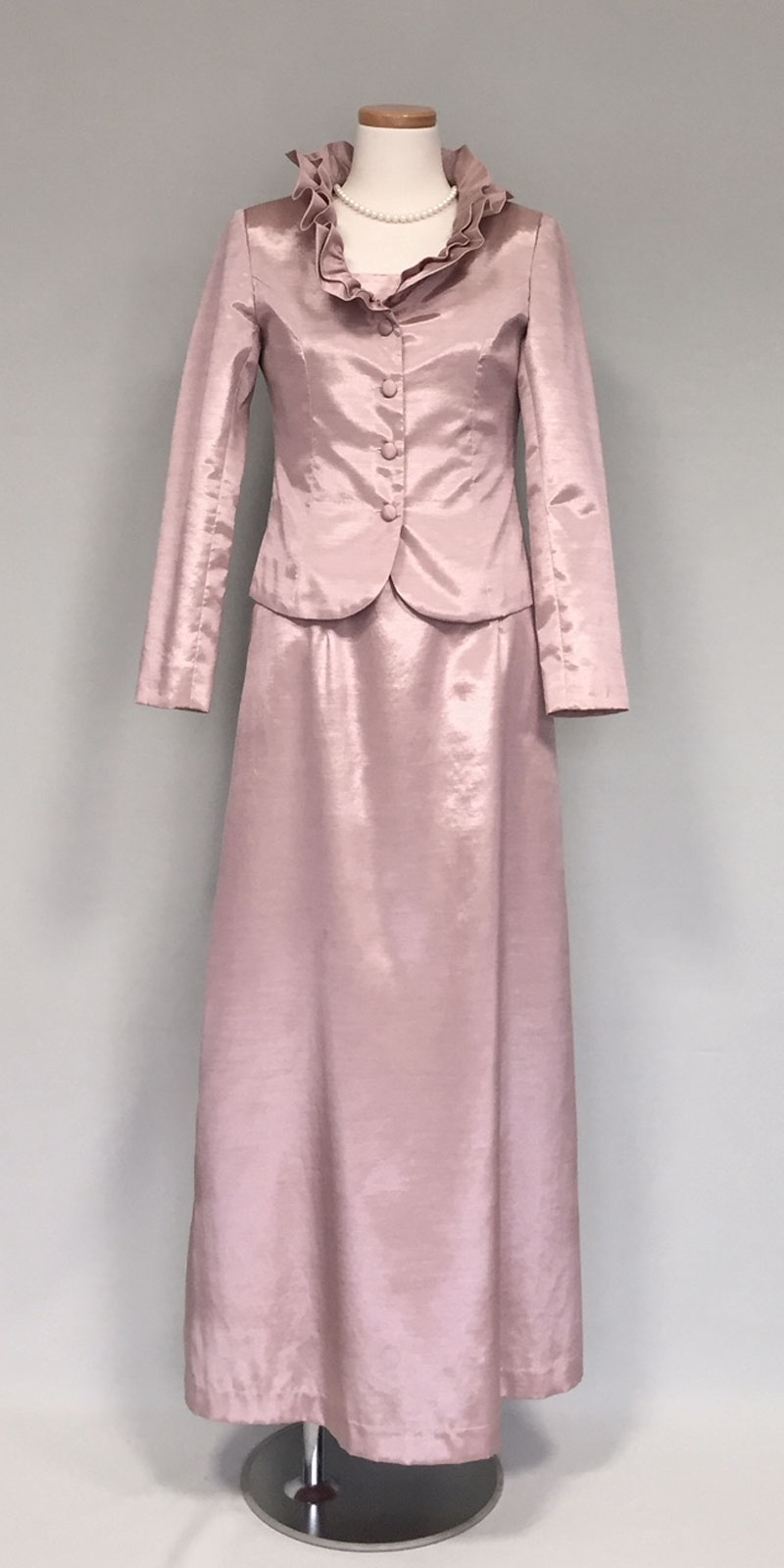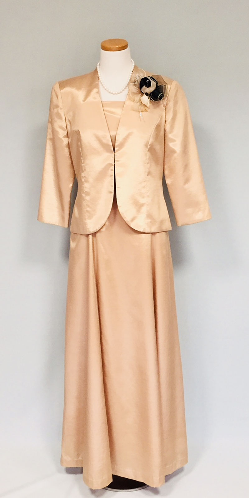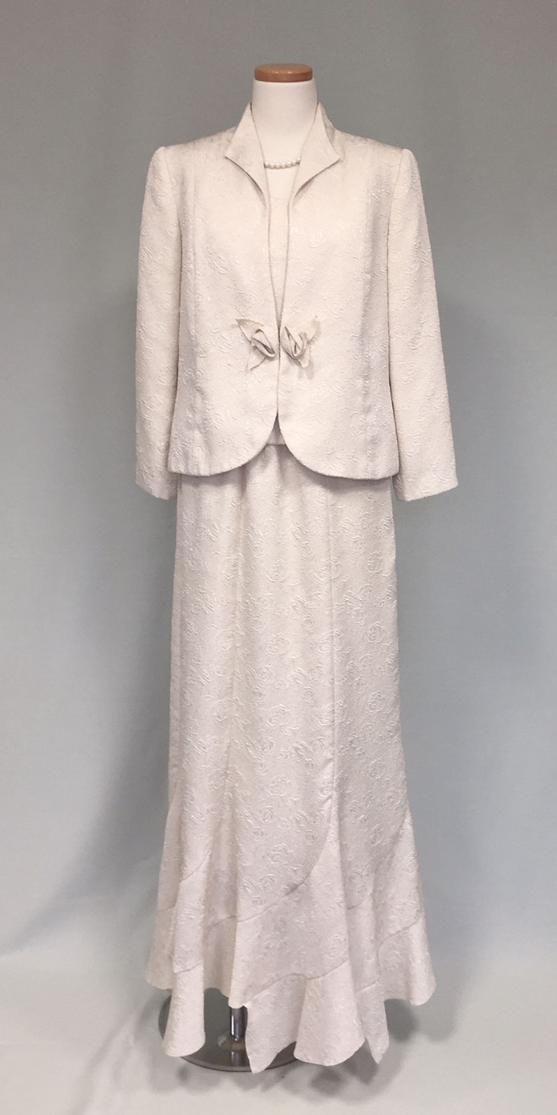 ◆膝下丈のアフタヌーンドレスまたはデイドレス。「ロングドレス」と指定のない時は、膝下丈も正式な昼の正礼装です。園遊会にもお薦めの格調高い装いです。◆
