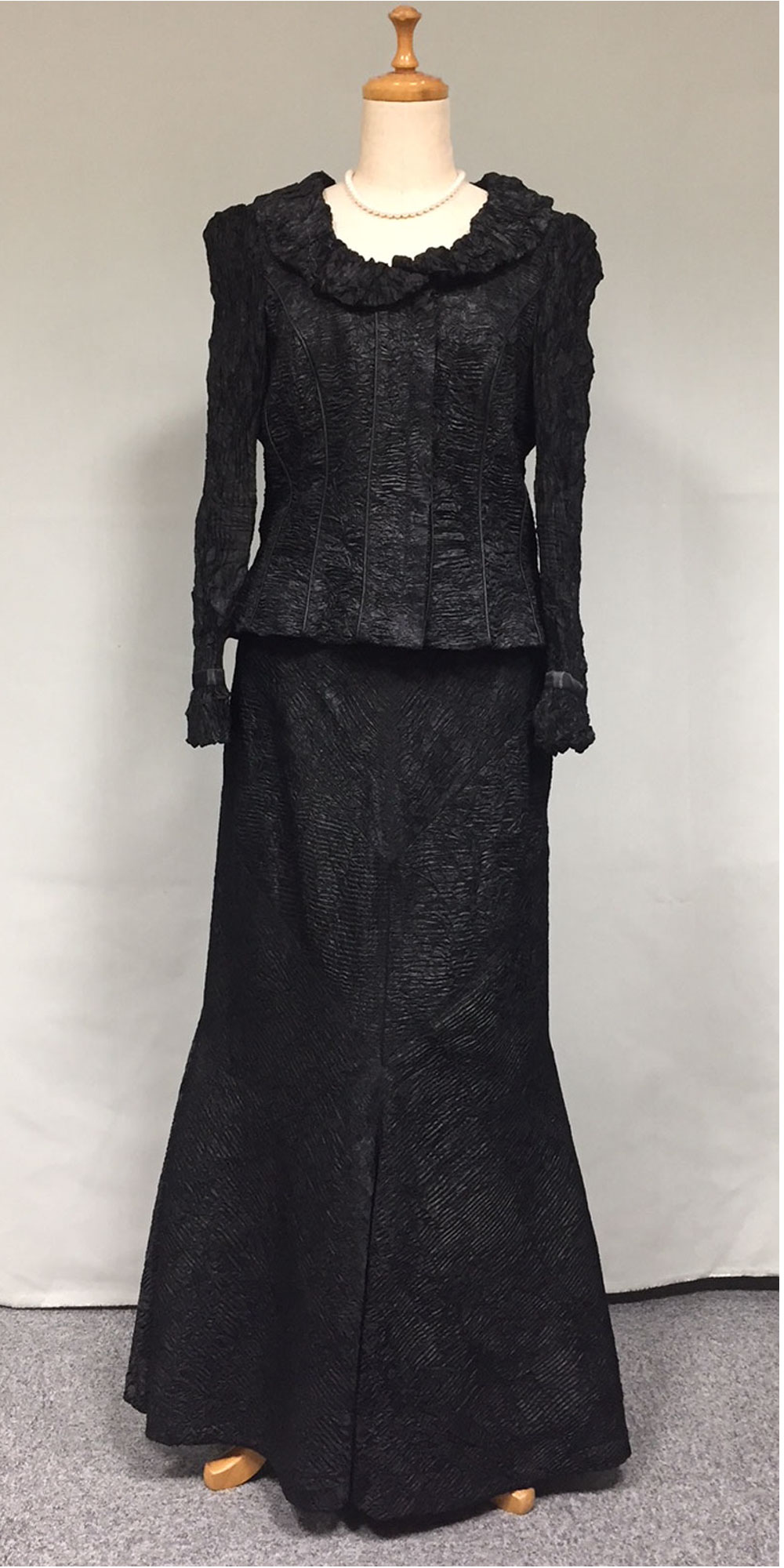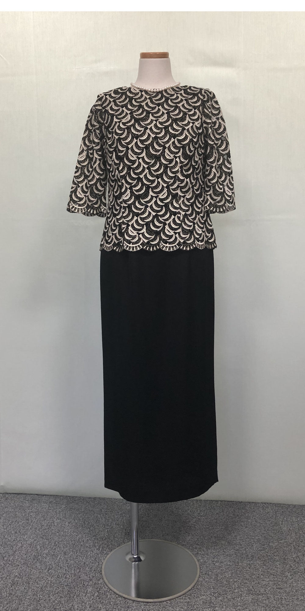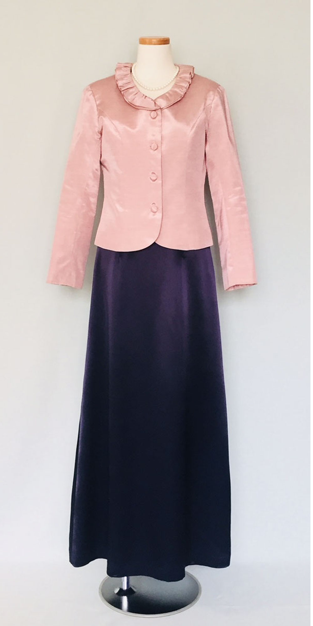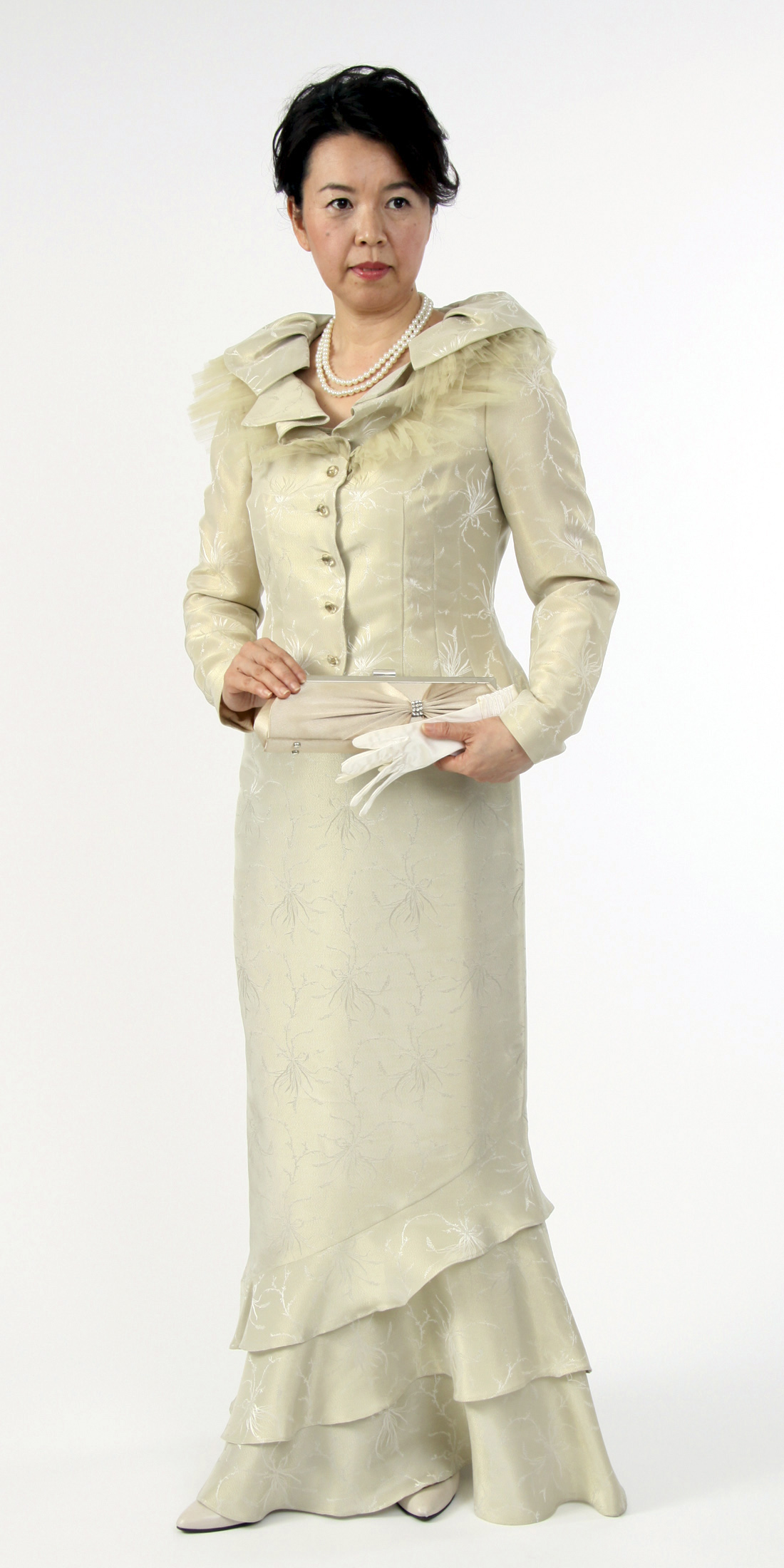 ◆エレガントでドレッシーなAライン・アンサンブルスタイルは、高品質の素材を使う事によりシンプルな中に、華やかさと正礼装らしい品格を印象づけます。