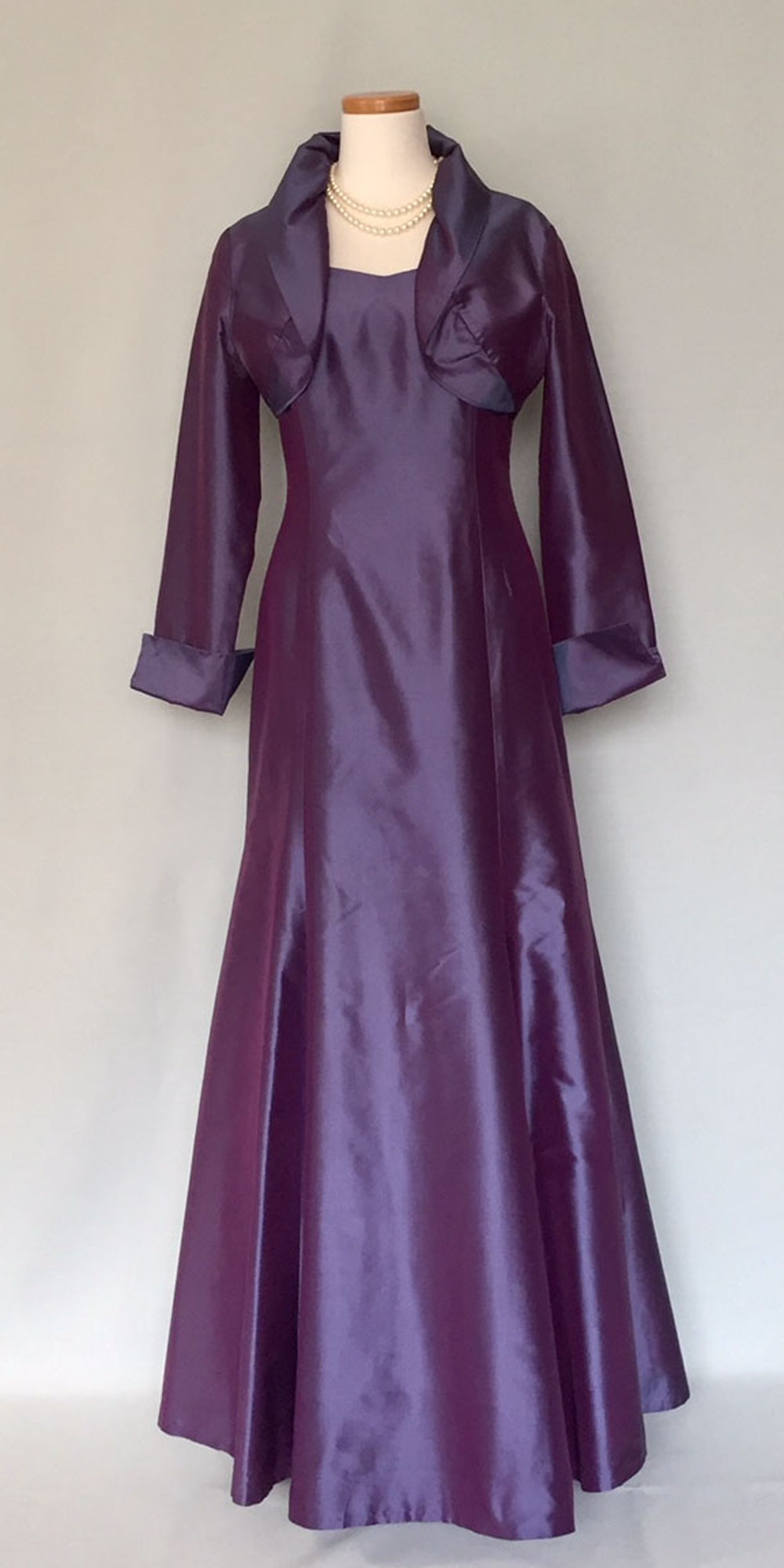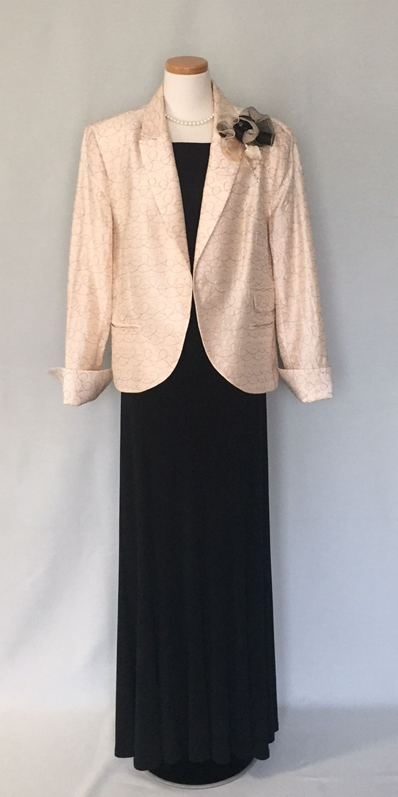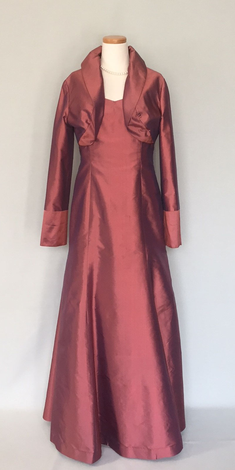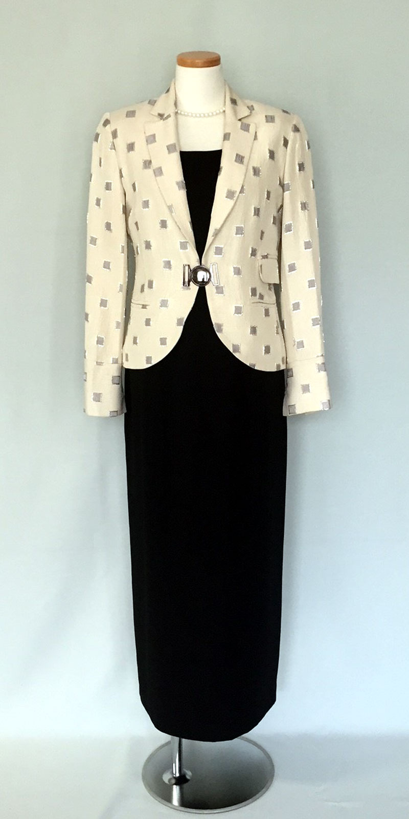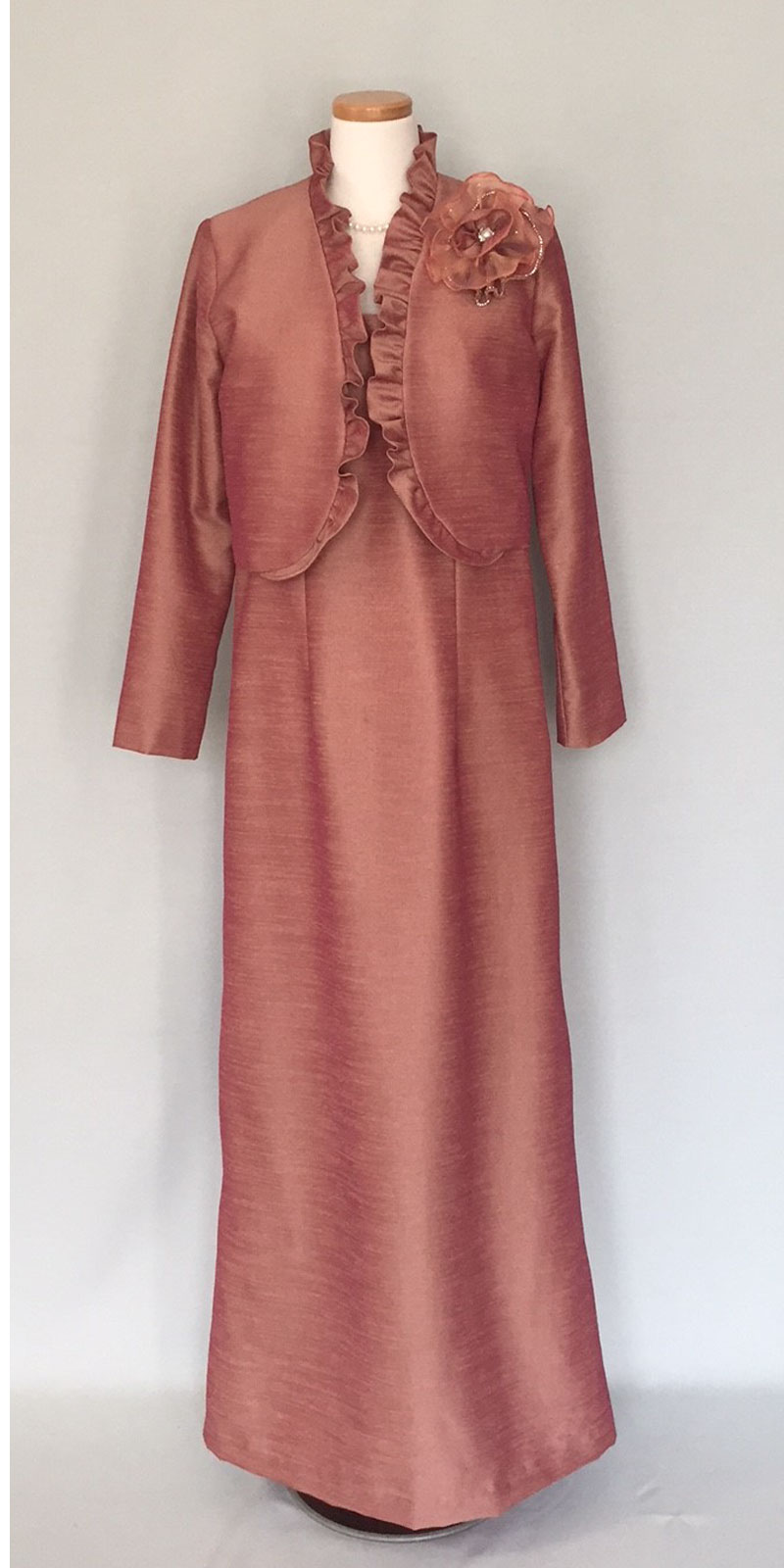 ◆一般的な結婚式でのお母様を始めとするご親族様に。ワンピースドレスやロング丈のスカートに、フォーマルに相応しいクオリティの高い素材のジャケットでコーディネートする準礼装です。昼の時間帯に肩を出すのはマナー違反です。